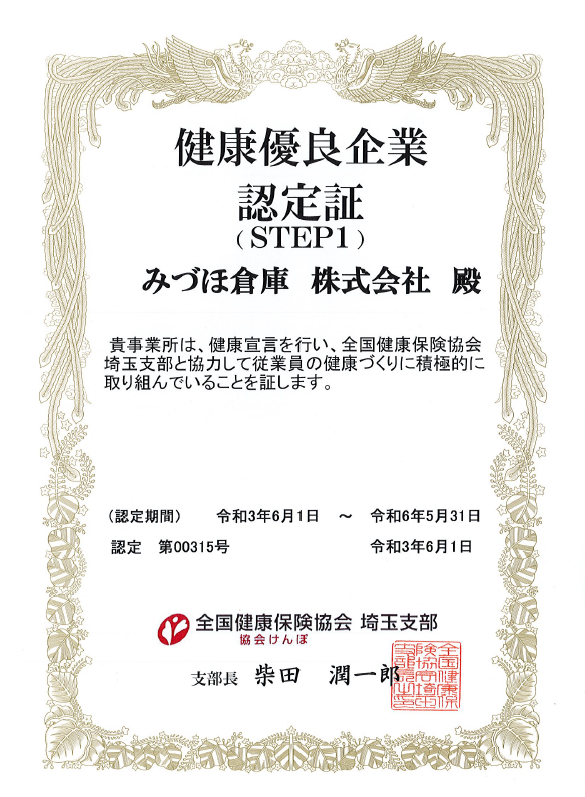 健康優良企業の認定を受けました。